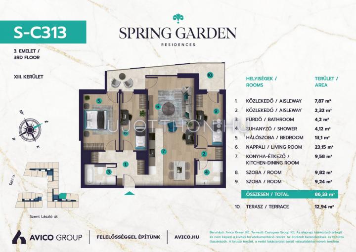 A XIII. kerület egyre fejlődő részén, Angyalföldön kerül megépítésre Társaságunk legújabb fejlesztése a „SPRING GARDEN” fantázianevű lakóegyüttes, mely a Szent László út csendes, kisvárosias övezetében található 218 lakásos társasház. A Rákos-patak mentén végig futó zöld sáv, illetve a Városliget relatív közelsége számos kikapcsolódási lehetőséget biztosít.