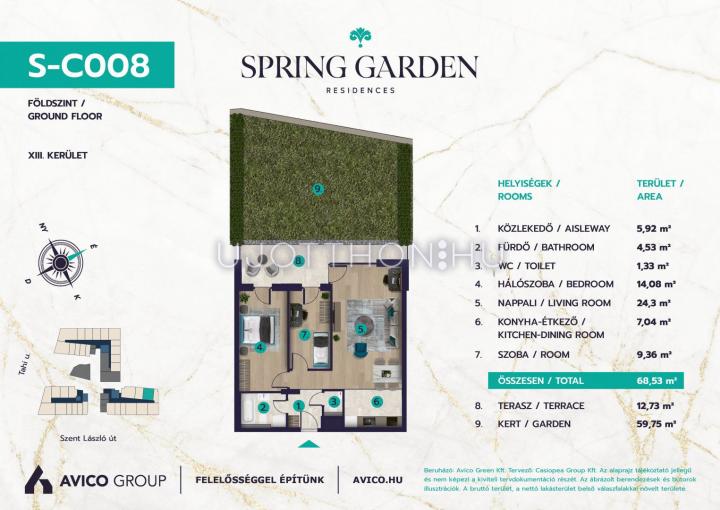 A XIII. kerület egyre fejlődő részén, Angyalföldön kerül megépítésre Társaságunk legújabb fejlesztése a „SPRING GARDEN” fantázianevű lakóegyüttes, mely a Szent László út csendes, kisvárosias övezetében található 218 lakásos társasház. A Rákos-patak mentén végig futó zöld sáv, illetve a Városliget relatív közelsége számos kikapcsolódási lehetőséget biztosít.