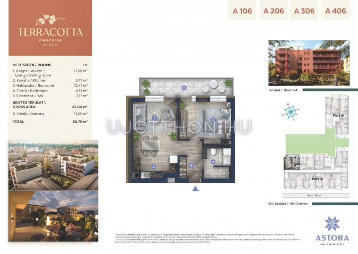 2 szobás 49 m2-es Lakás Terracotta Club House - Budapest XIII. kerület, Angyalföld, Jász utca 56