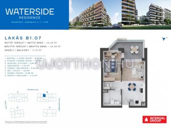 2 szobás 46 m2-es Lakás Waterside Residence - Budapest XIII. kerület, Vizafogó, Danubius u. 7