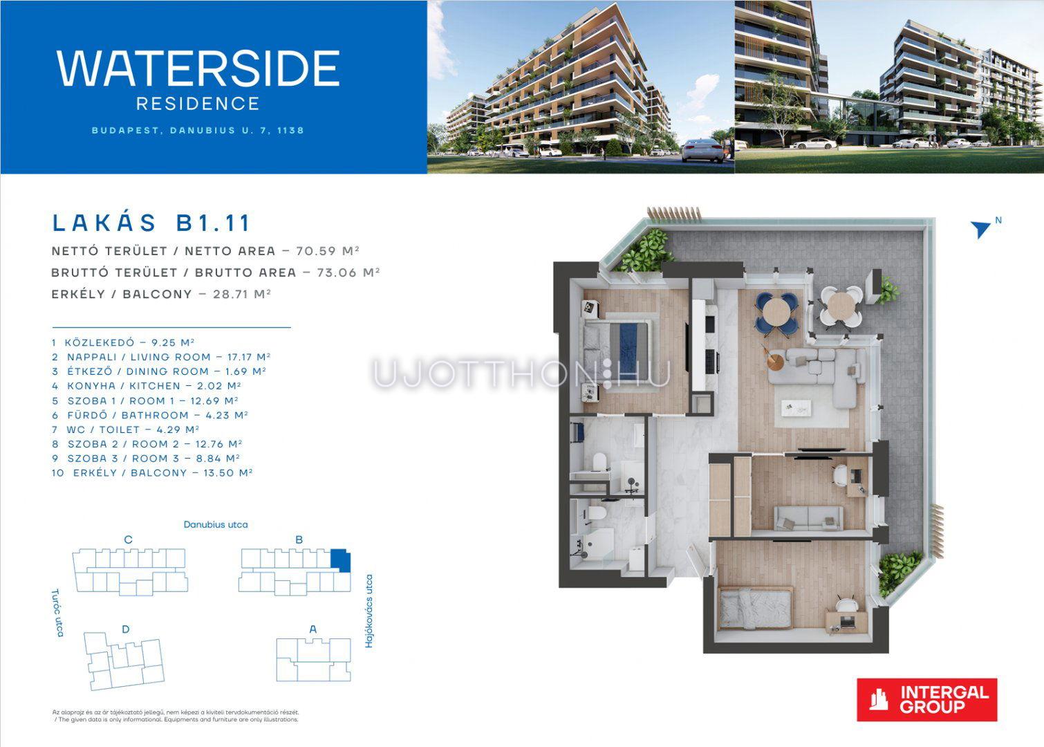 4 szobás 73 m2-es Lakás Waterside Residence - Budapest XIII. kerület, Vizafogó, Danubius u. 7