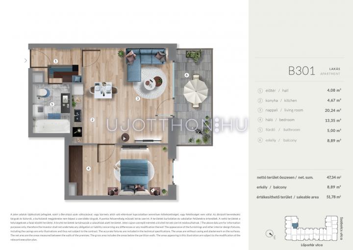2 szobás 47 m2-es Lakás WestGate 4 - Budapest XIII. kerület, Lőportárdűlő