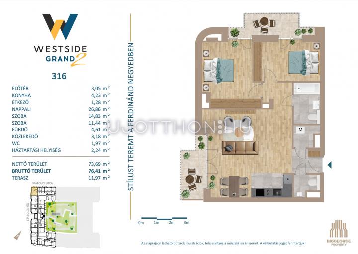 3 szobás 74 m2-es Lakás Westside Grand 2 - Budapest XIII. kerület