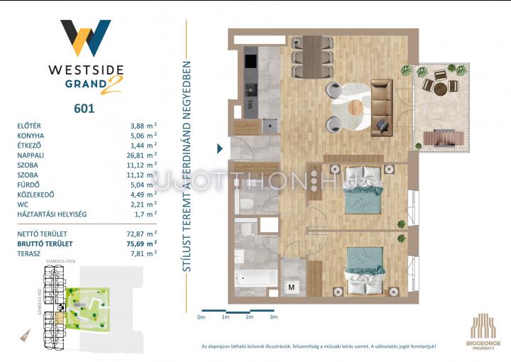 3 szobás 73 m2-es Lakás Westside Grand 2 - Budapest XIII. kerület
