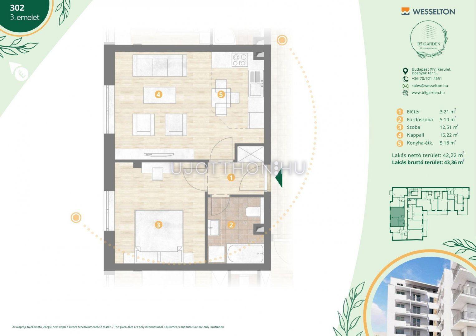 2 szobás 43 m2-es Lakás B5 Garden Residence - Budapest XIV. kerület, Kiszugló, Bosnyák Utca 5