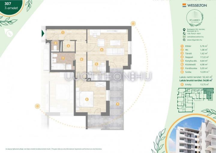 2 szobás 55 m2-es Lakás B5 Garden Residence - Budapest XIV. kerület, Kiszugló, Bosnyák Utca 5