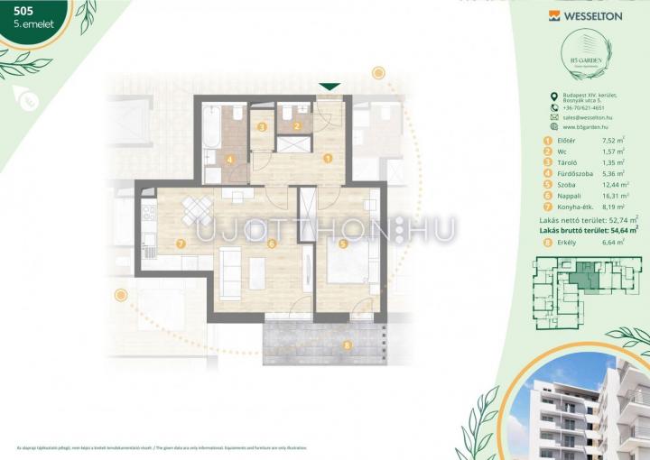 2 szobás 55 m2-es Lakás B5 Garden Residence - Budapest XIV. kerület, Kiszugló, Bosnyák Utca 5
