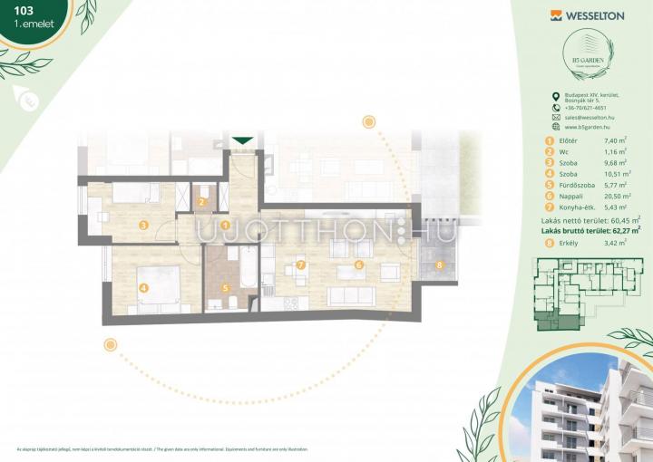 3 szobás 64 m2-es Lakás B5 Garden Residence - Budapest XIV. kerület, Kiszugló, Bosnyák Utca 5