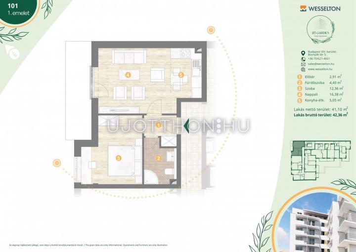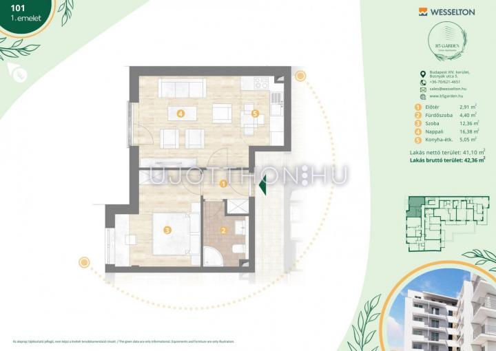 2 szobás 42 m2-es Lakás B5 Garden Residence - Budapest XIV. kerület, Kiszugló, Bosnyák Utca 5