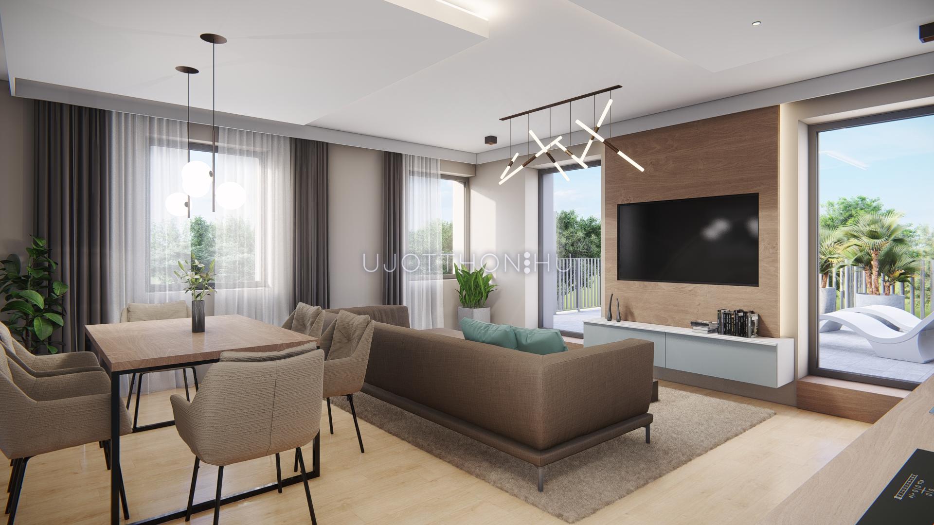 Életminőség: A földszinti lakások privát kertkapcsolattal, az emeleti otthonok napfényes erkéllyel vagy terasszal rendelkeznek.