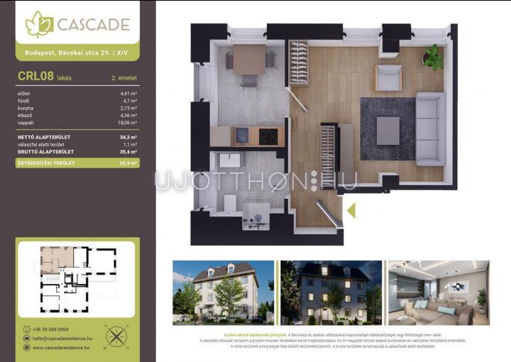 1 szobás 34 m2-es Lakás Cascade Residence - Budapest XIV. kerület, Herminamező, Bácskai utca 29/b