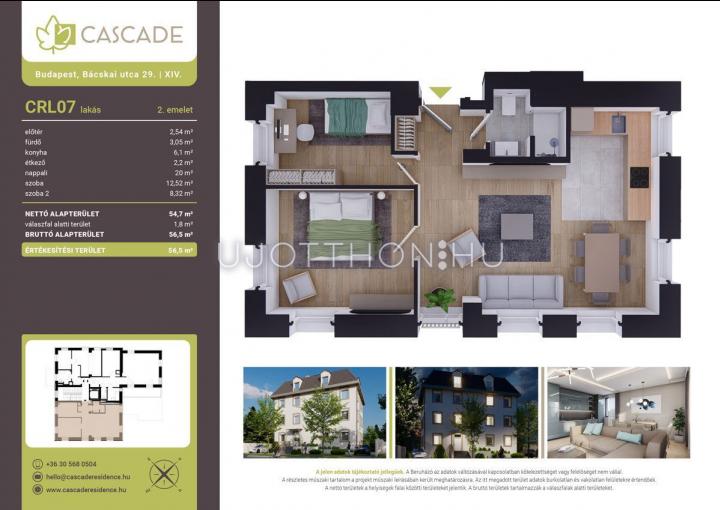 3 szobás 55 m2-es Lakás Cascade Residence - Budapest XIV. kerület, Herminamező, Bácskai utca 29/b