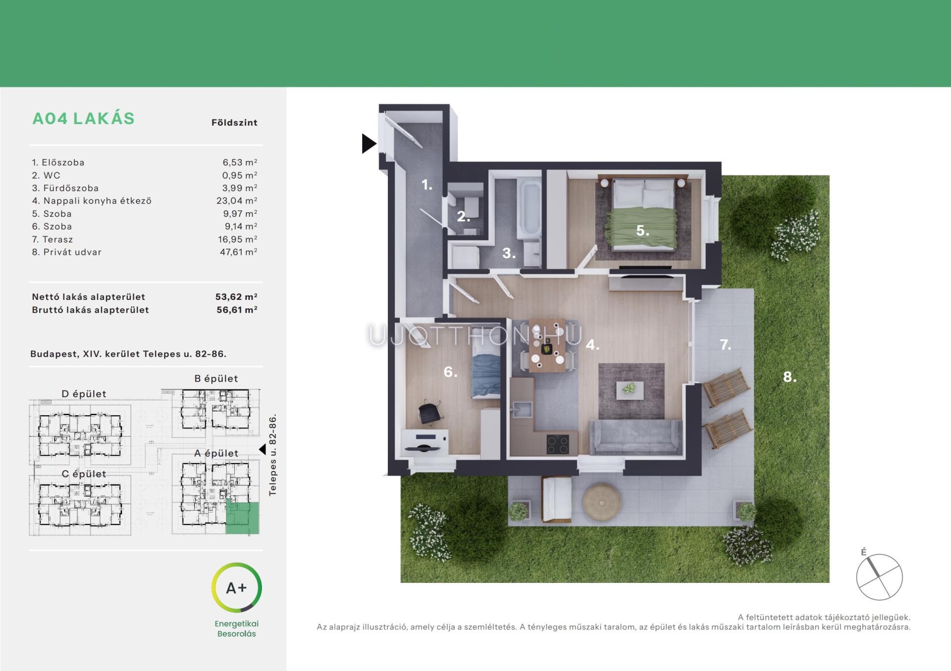 A jelen adatok tájékoztató jellegűek, ezért a Beruházó (sem a hirdető) azok változásával, vagy bármely attól való eltéréssel kapcsolatban semmilyen kötelezettséget, vagy felelősséget nem vállal.
