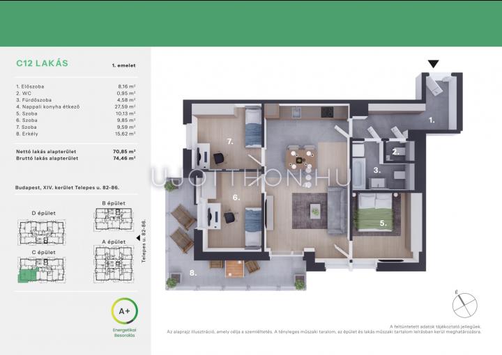A jelen adatok tájékoztató jellegűek, ezért a Beruházó (sem a hirdető) azok változásával, vagy bármely attól való eltéréssel kapcsolatban semmilyen kötelezettséget, vagy felelősséget nem vállal.