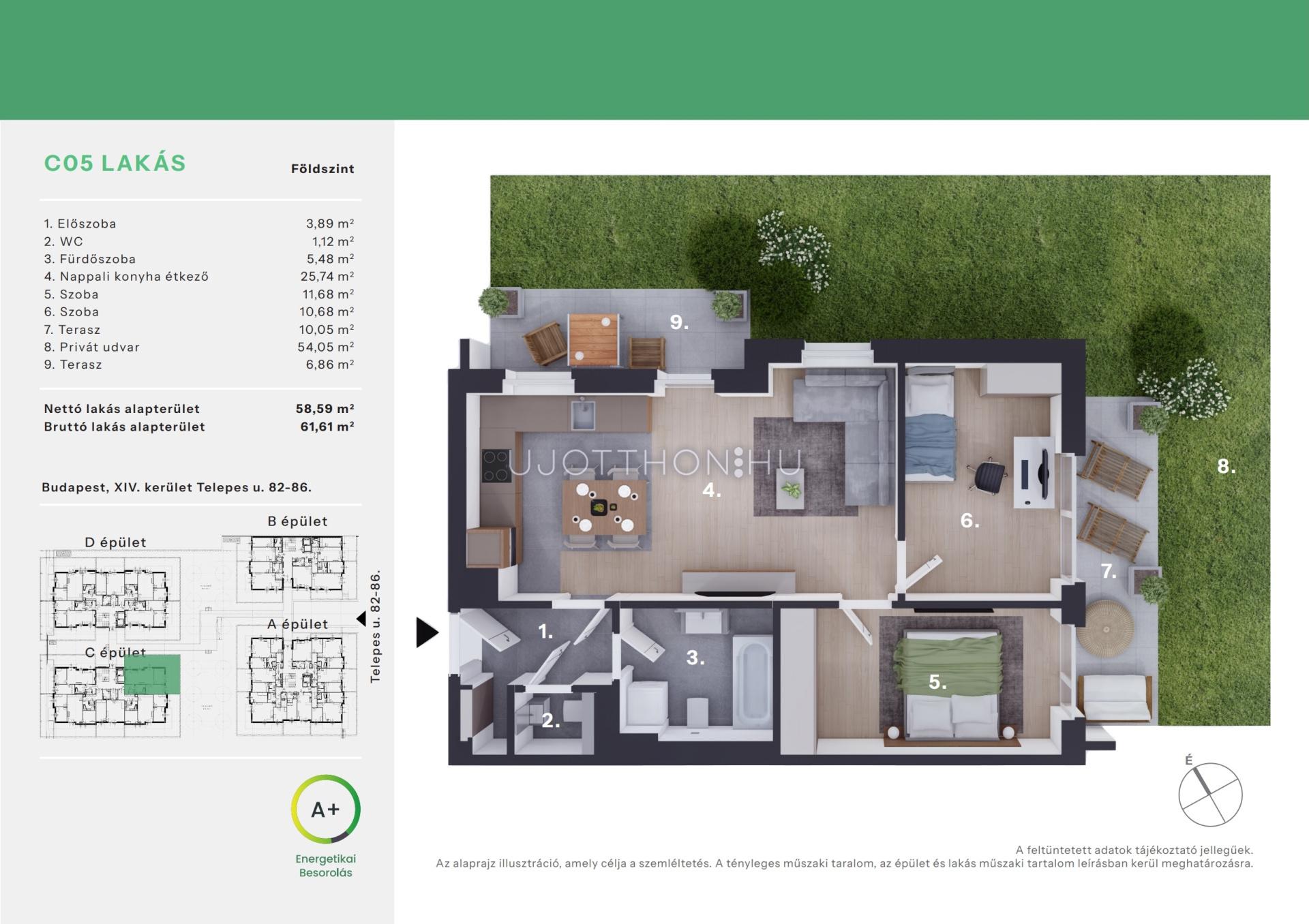 A jelen adatok tájékoztató jellegűek, ezért a Beruházó (sem a hirdető) azok változásával, vagy bármely attól való eltéréssel kapcsolatban semmilyen kötelezettséget, vagy felelősséget nem vállal.