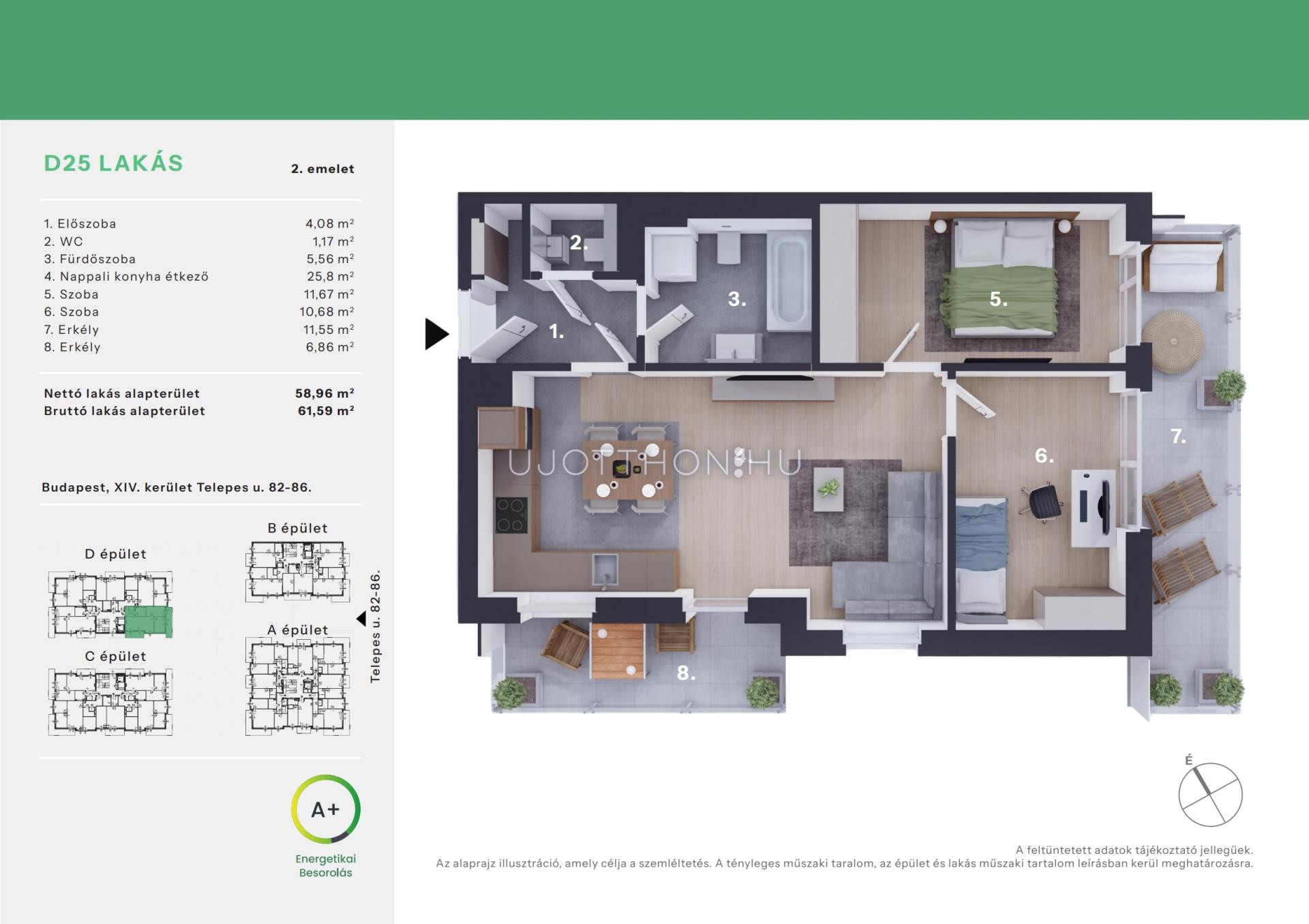 A jelen adatok tájékoztató jellegűek, ezért a Beruházó (sem a hirdető) azok változásával, vagy bármely attól való eltéréssel kapcsolatban semmilyen kötelezettséget, vagy felelősséget nem vállal.
