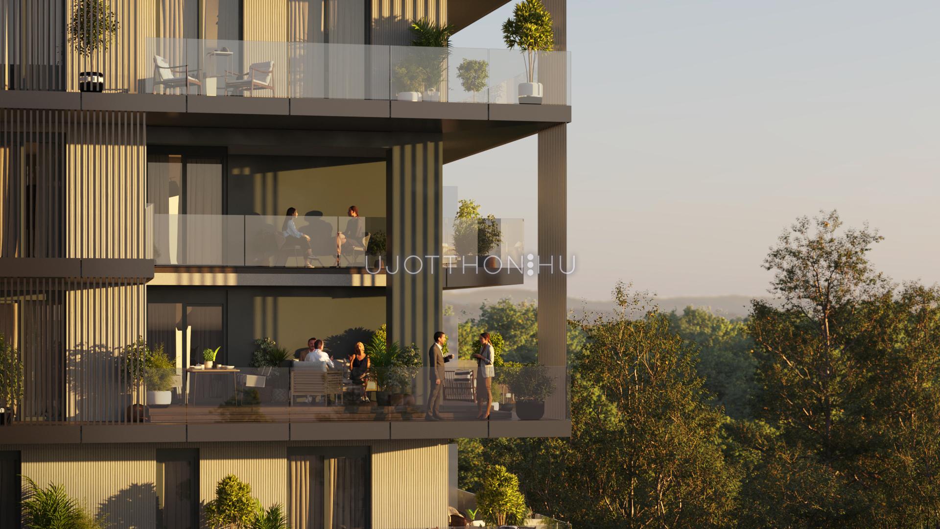 A modern belsőépítészeti megoldások és a gépesített konyhabútorok mellett többek között okosotthonba integrált árnyékolórendszer, szalagparketta vagy éppen alumínium nyílászárók adnak extra műszaki tartalmat. A lakásokhoz emellett gépkocsi beállók és tárolók vásárlására is van lehetőség.