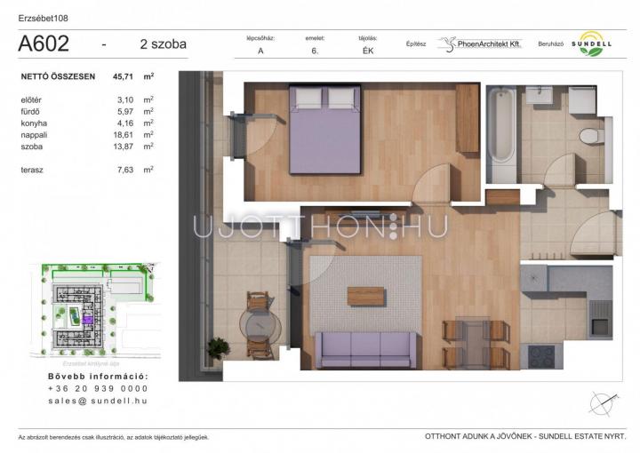 Modern otthonok Zugló szívében! Az Erzsébet 108 lakópark korszerű építészeti megoldásokkal, barátságos megjelenéssel és világos életterekkel kínál lakásokat. Környezetbarát fűtési és hűtési rendszer, egyedi hőmennyiség mérők, kertkapcsolatos földszinti lakások, mélygarázs és tárolók állnak rendelkezésre.