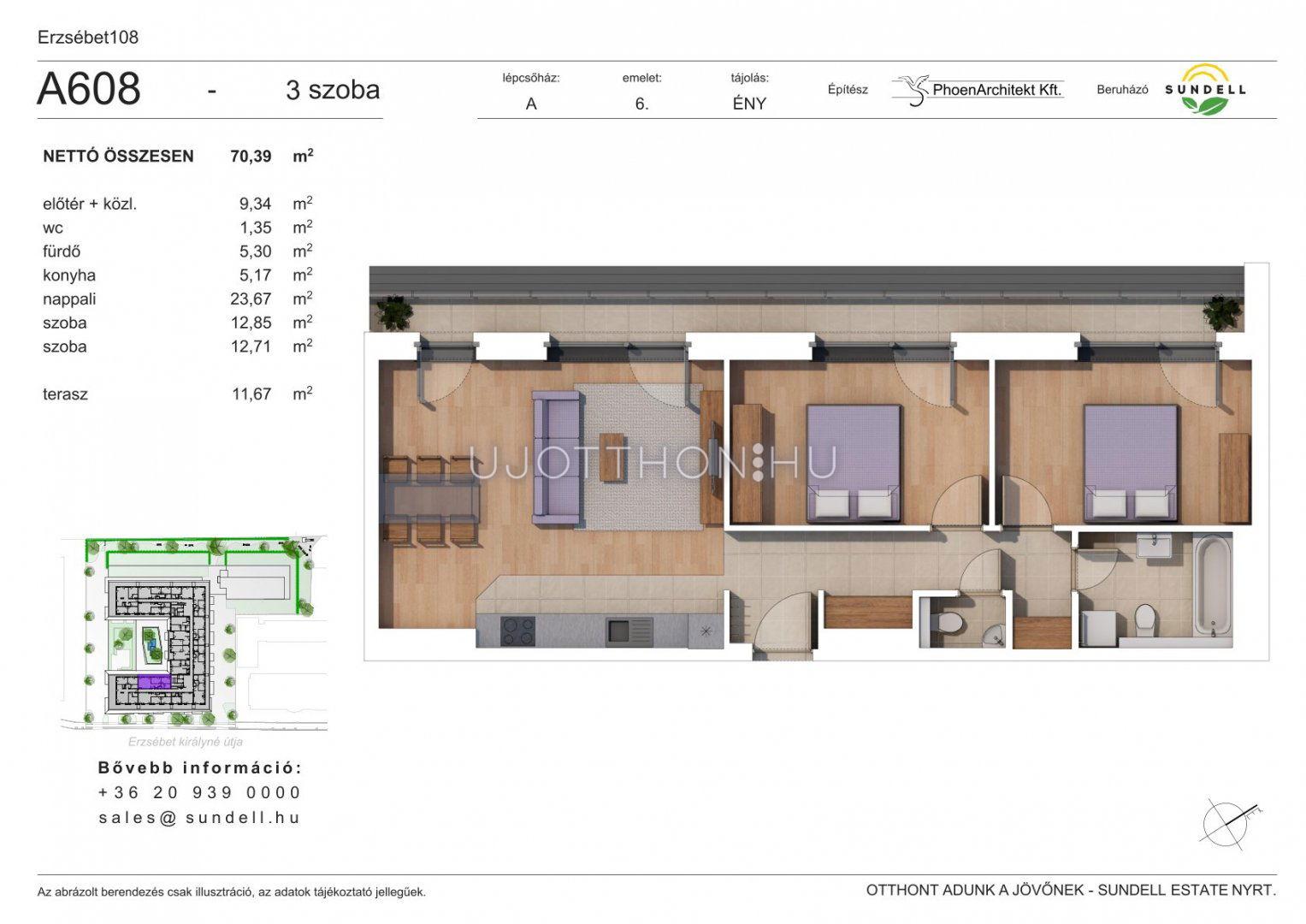 Modern otthonok Zugló szívében! Az Erzsébet 108 lakópark korszerű építészeti megoldásokkal, barátságos megjelenéssel és világos életterekkel kínál lakásokat. Környezetbarát fűtési és hűtési rendszer, egyedi hőmennyiség mérők, kertkapcsolatos földszinti lakások, mélygarázs és tárolók állnak rendelkezésre.