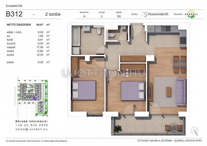 Modern otthonok Zugló szívében! Az Erzsébet 108 lakópark korszerű építészeti megoldásokkal, barátságos megjelenéssel és világos életterekkel kínál lakásokat. Környezetbarát fűtési és hűtési rendszer, egyedi hőmennyiség mérők, kertkapcsolatos földszinti lakások, mélygarázs és tárolók állnak rendelkezésre.