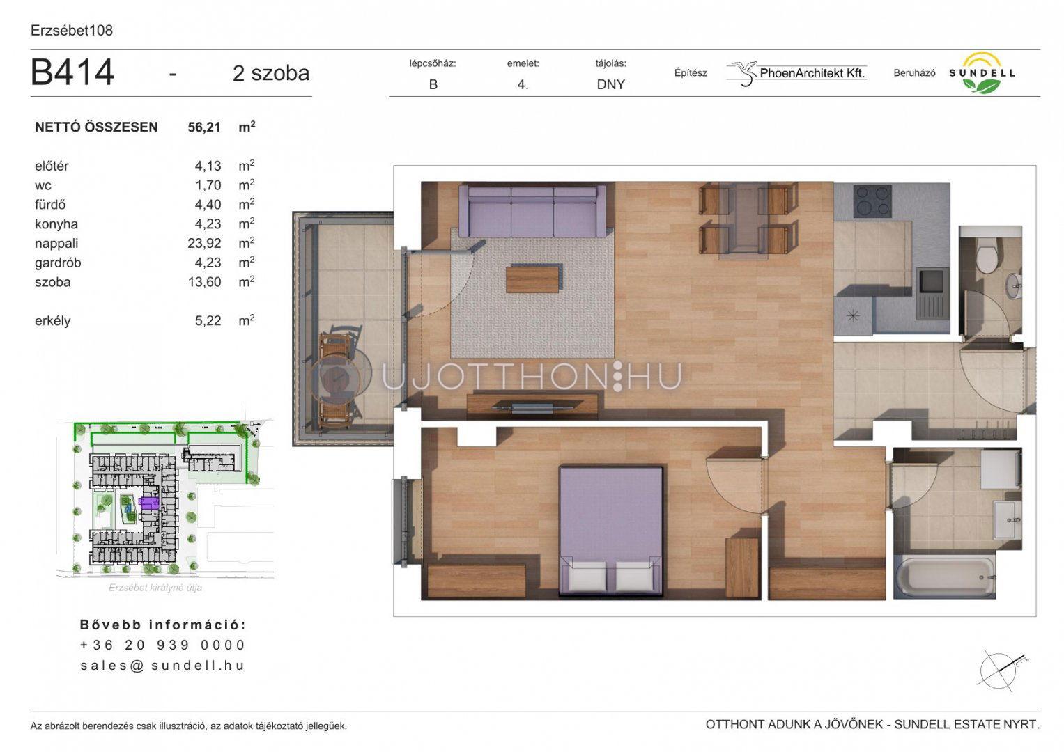 Modern otthonok Zugló szívében! Az Erzsébet 108 lakópark korszerű építészeti megoldásokkal, barátságos megjelenéssel és világos életterekkel kínál lakásokat. Környezetbarát fűtési és hűtési rendszer, egyedi hőmennyiség mérők, kertkapcsolatos földszinti lakások, mélygarázs és tárolók állnak rendelkezésre.