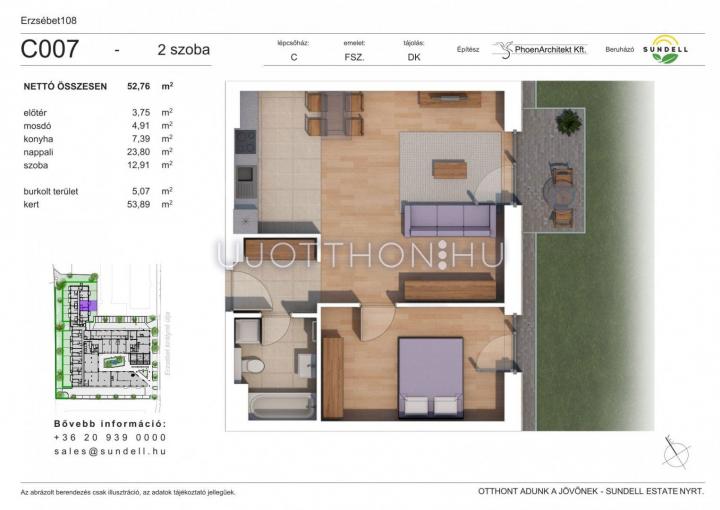 Modern otthonok Zugló szívében! Az Erzsébet 108 lakópark korszerű építészeti megoldásokkal, barátságos megjelenéssel és világos életterekkel kínál lakásokat. Környezetbarát fűtési és hűtési rendszer, egyedi hőmennyiség mérők, kertkapcsolatos földszinti lakások, mélygarázs és tárolók állnak rendelkezésre.