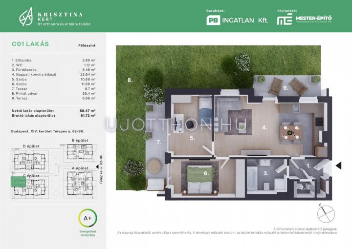 1 + 2 félszobás 58 m2-es Lakás Krisztina Kert - Budapest XIV. kerület, Alsórákos, Telepes utca 82-86
