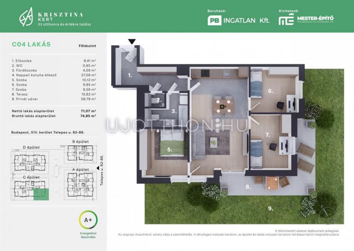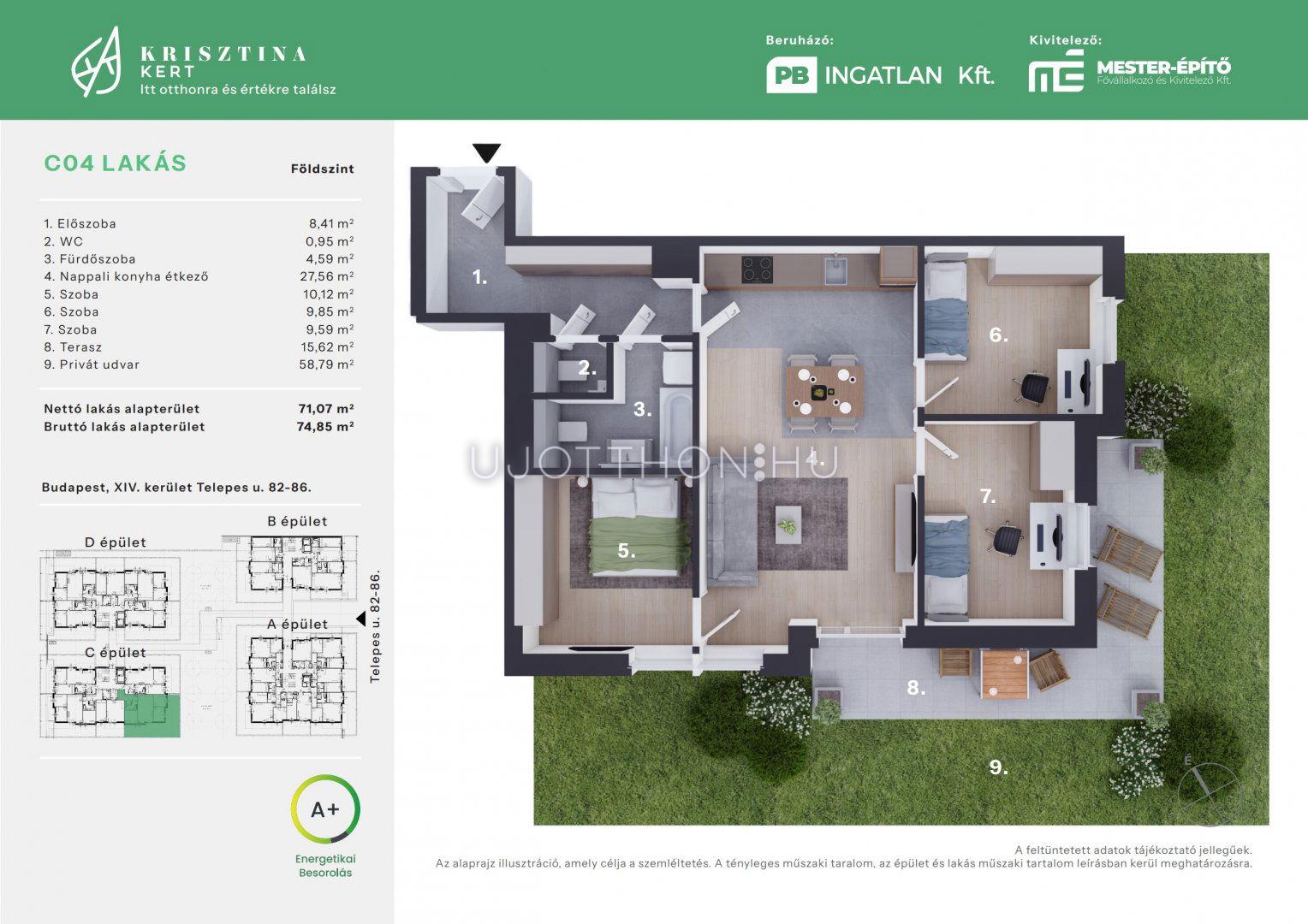 1 + 3 félszobás 71 m2-es Lakás Krisztina Kert - Budapest XIV. kerület, Alsórákos, Telepes utca 82-86