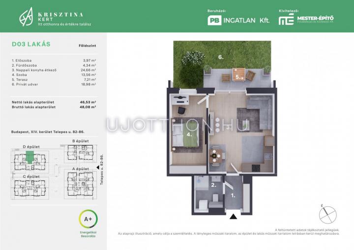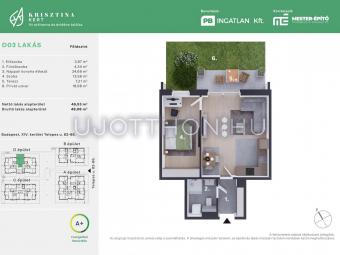 1 + 1 félszobás 47 m2-es Lakás Krisztina Kert - Budapest XIV. kerület, Alsórákos, Telepes utca 82-86