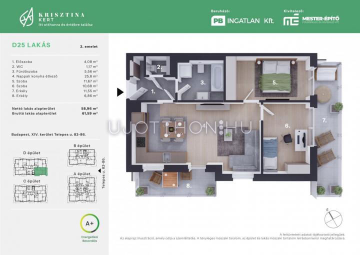 1 + 2 félszobás 59 m2-es Lakás Krisztina Kert - Budapest XIV. kerület, Alsórákos, Telepes utca 82-86