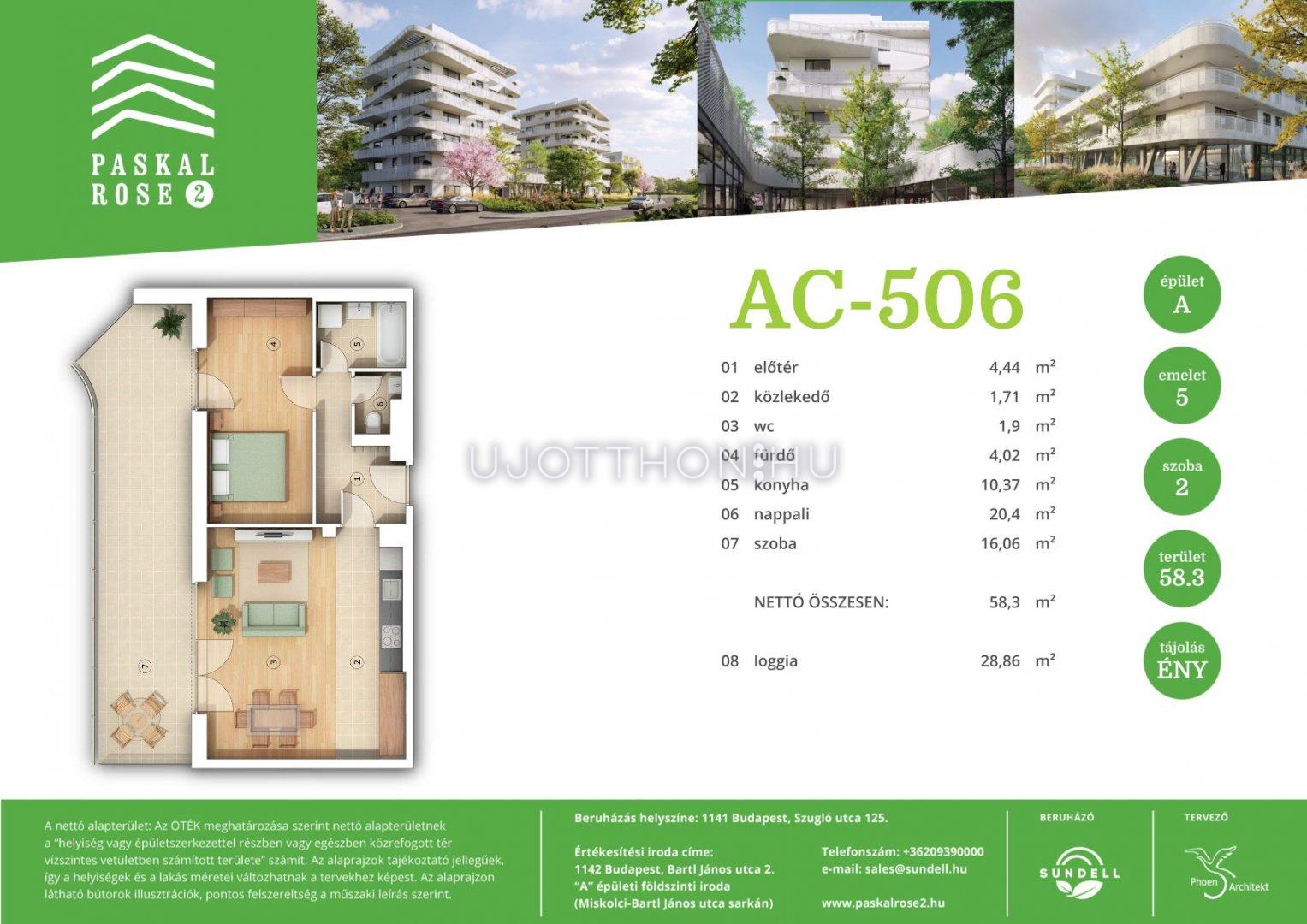 2 szobás 59 m2-es Lakás Paskal Rose2 - Budapest XIV. kerület, Alsórákos, Bartl János utca 46149