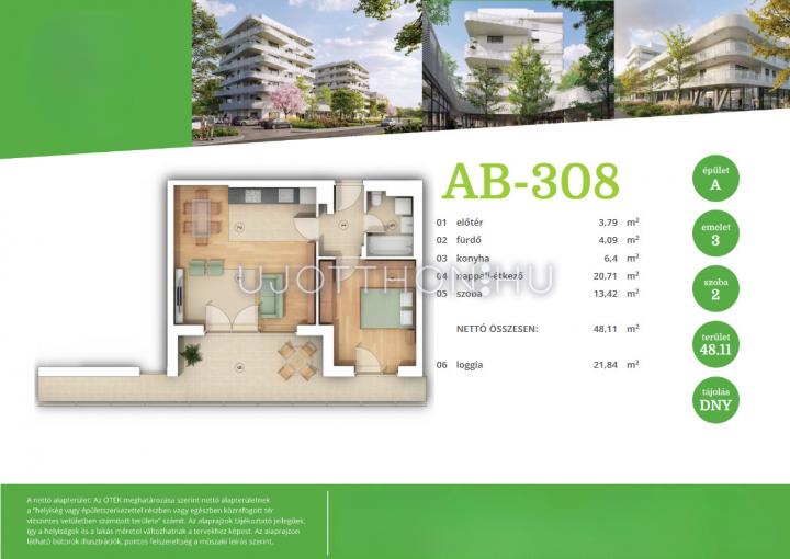Az ingatlan nettó alapterülete 48,41 m² + 21,90 m² loggia.