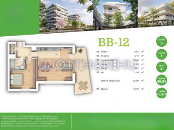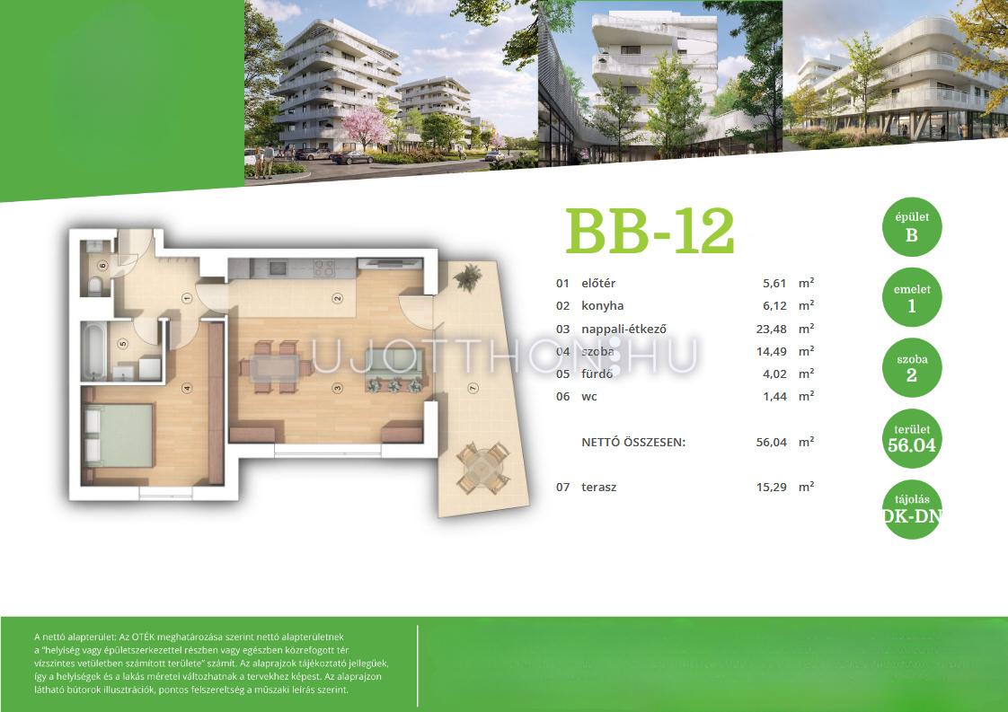 Az ingatlan nettó alapterülete 55,16 m² + 15,29 m² terasz.