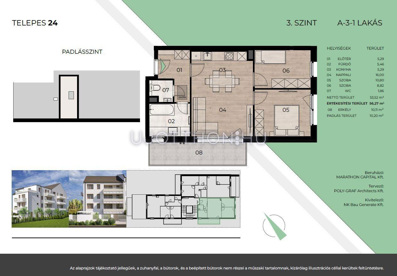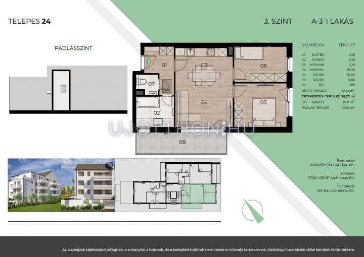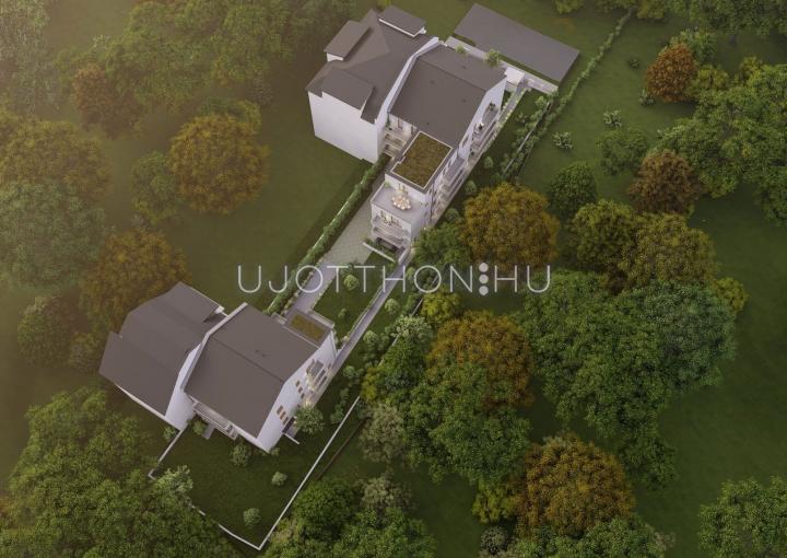 - Egyedi lehetőségek: az első emeleti hátsókerti lakáshoz 137 m²-es kizárólagos kertkapcsolat, míg a legfelső emeleti lakásokhoz 10-15 m²-es padlástér használati jog tartozik.