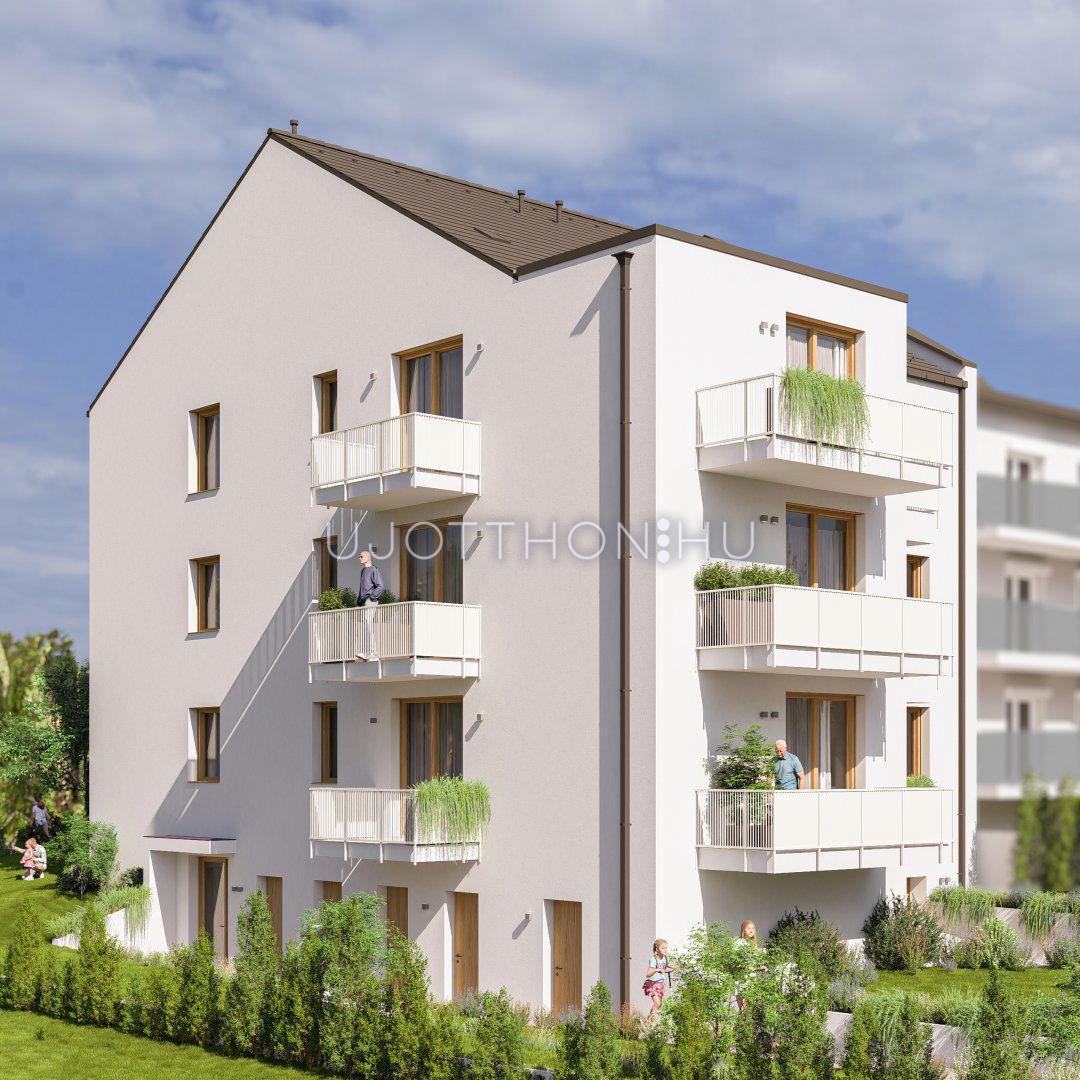 - Egyedi lehetőségek: az első emeleti hátsókerti lakáshoz 137 m²-es kizárólagos kertkapcsolat, míg a legfelső emeleti lakásokhoz 10-15 m²-es padlástér használati jog tartozik.
