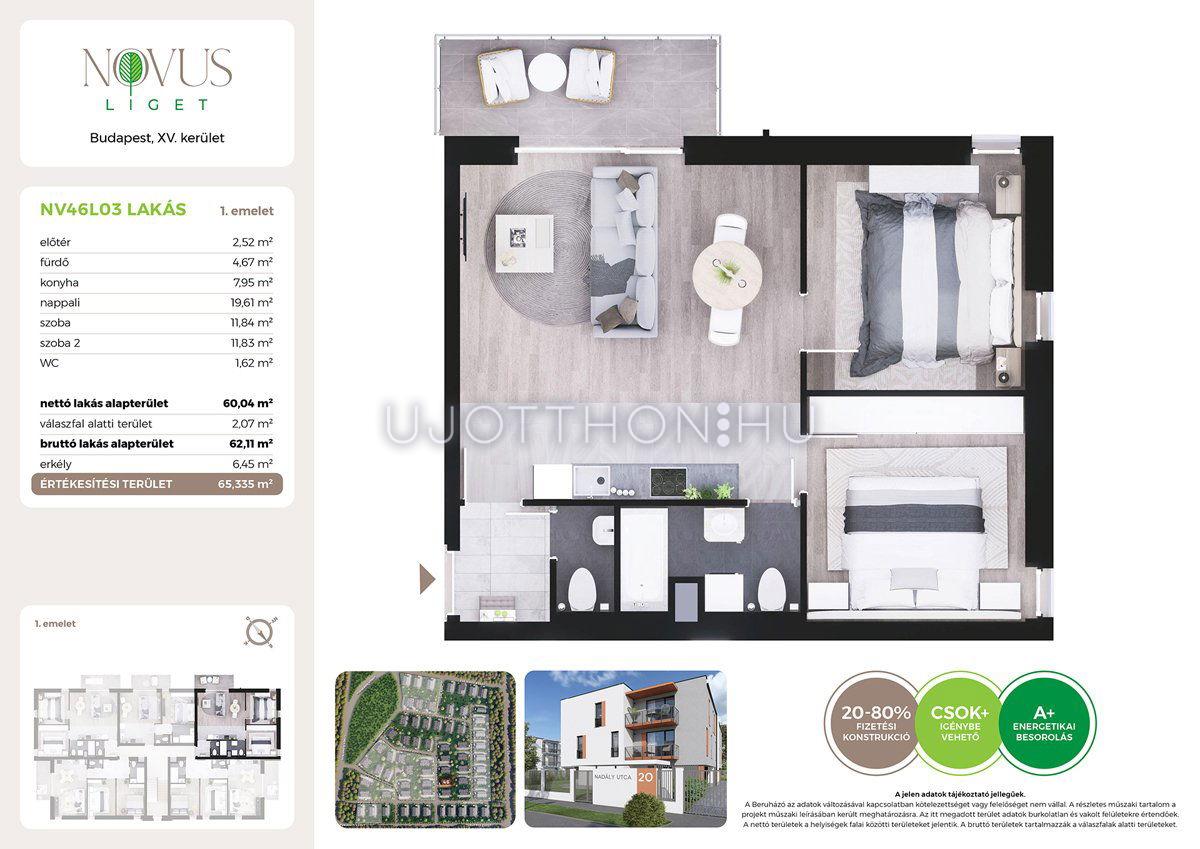 3 szobás 60 m2-es Lakás Novus Liget - Budapest XV. kerület, Rákospalota, Kékszilva utca 2