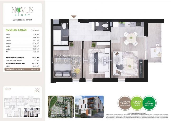3 szobás 59 m2-es Lakás Novus Liget - Budapest XV. kerület, Rákospalota, Kékszilva utca 2
