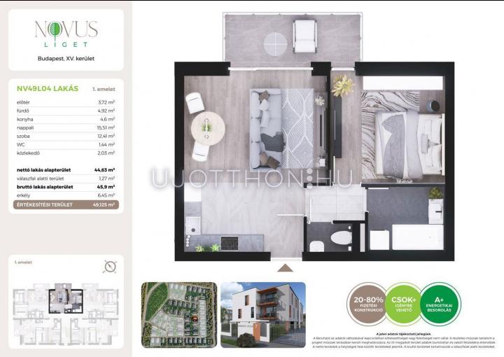 2 szobás 45 m2-es Lakás Novus Liget - Budapest XV. kerület, Rákospalota, Kékszilva utca 2