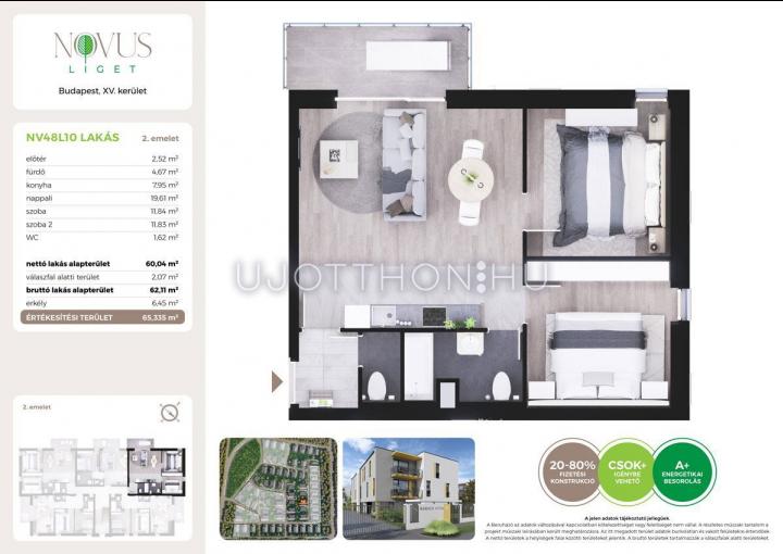 3 szobás 60 m2-es Lakás Novus Liget - Budapest XV. kerület, Rákospalota, Kékszilva utca 2