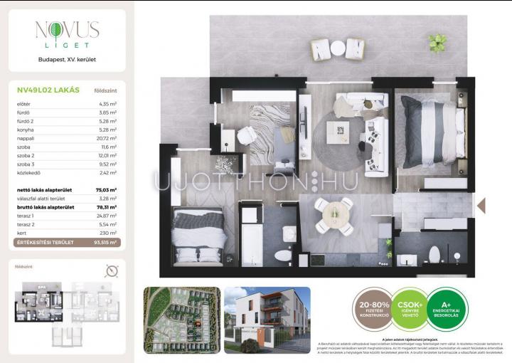 A Novus Liget Budapest 15. kerületének legújabb, modern lakóparkja, amelyet a fenntarthatóság és az élhető környezet jegyében álmodtak meg. A lakóparkban 40 társasház épül, összesen több mint 400, 2, 3 és 4 szobás lakással, amelyek tágas belső tereikkel, kertkapcsolattal vagy terasszal kínálnak kényelmet és nyugalmat. Az A+ energetikai besorolású épületek hőszivattyús rendszerrel és korszerű szigeteléssel készülnek, biztosítva az alacsony fenntartási költségeket és a környezetbarát megoldásokat.