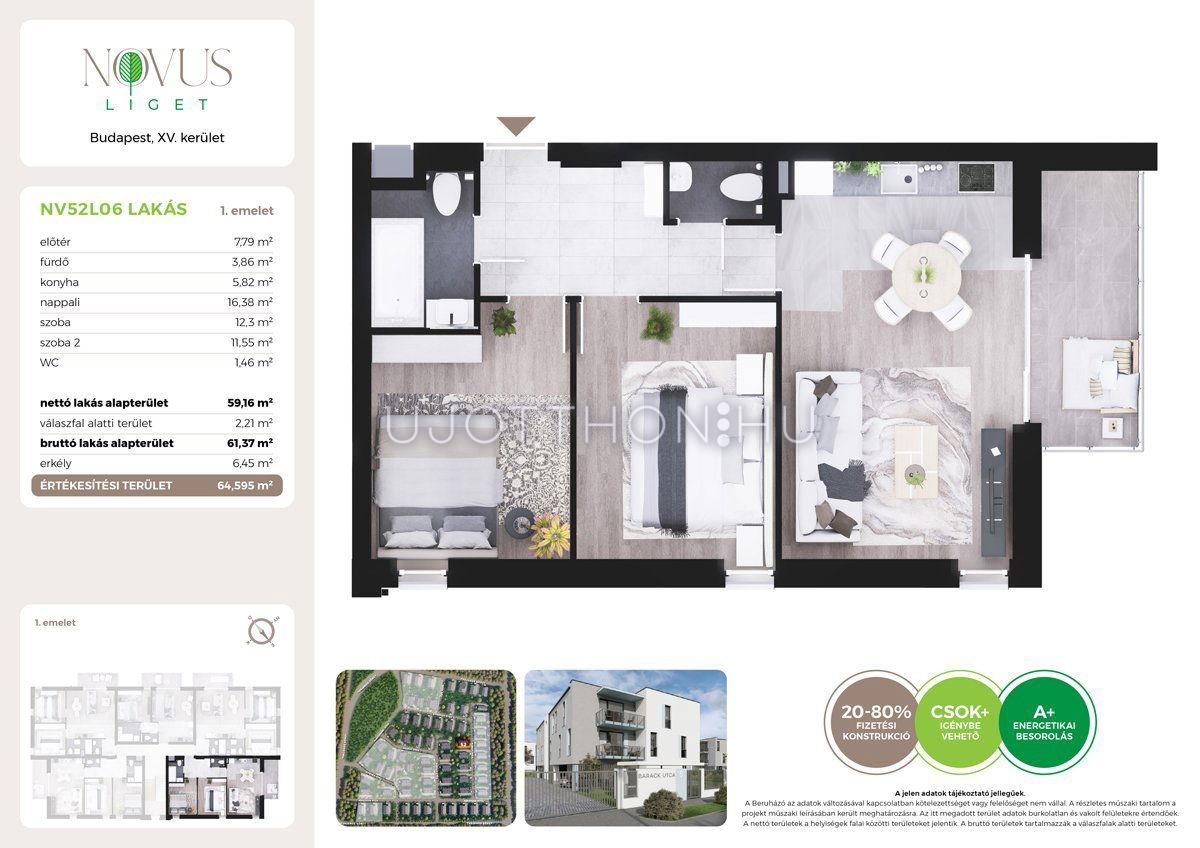 3 szobás 59 m2-es Lakás Novus Liget - Budapest XV. kerület, Rákospalota, Kékszilva utca 2