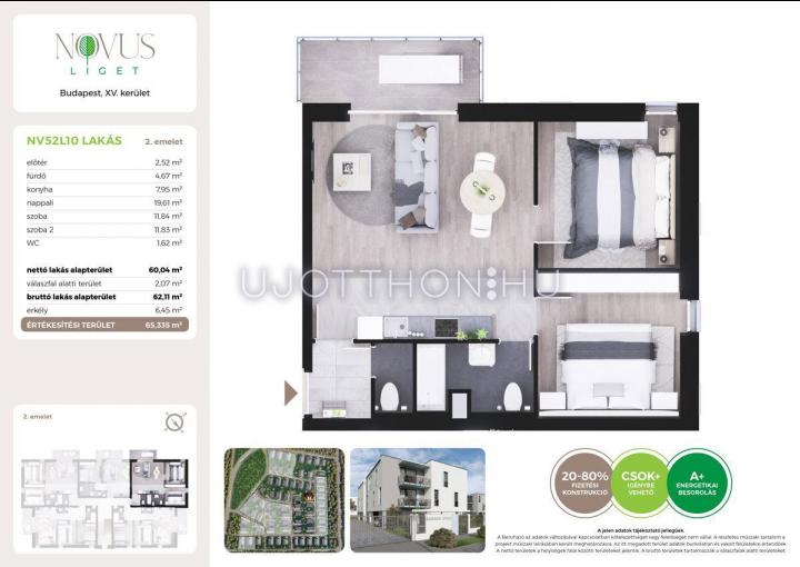 3 szobás 60 m2-es Lakás Novus Liget - Budapest XV. kerület, Rákospalota, Kékszilva utca 2
