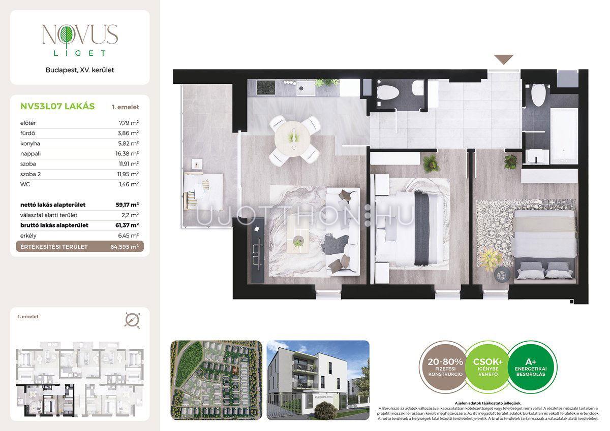 3 szobás 40 m2-es Lakás Novus Liget - Budapest XV. kerület, Rákospalota, Kékszilva utca 2