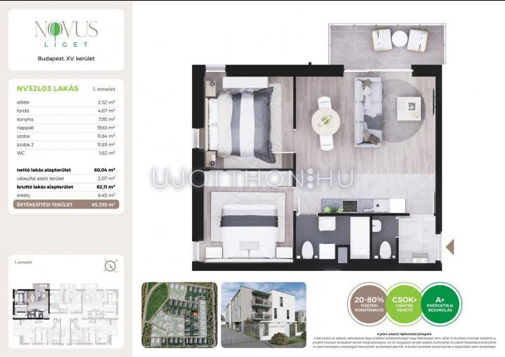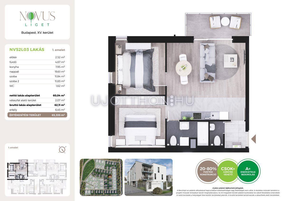 3 szobás 60 m2-es Lakás Novus Liget - Budapest XV. kerület, Rákospalota, Kékszilva utca 2