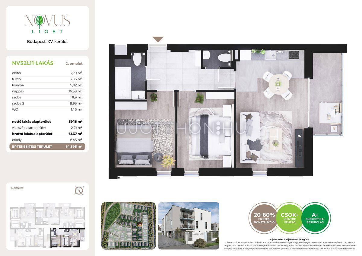 3 szobás 59 m2-es Lakás Novus Liget - Budapest XV. kerület, Rákospalota, Kékszilva utca 2