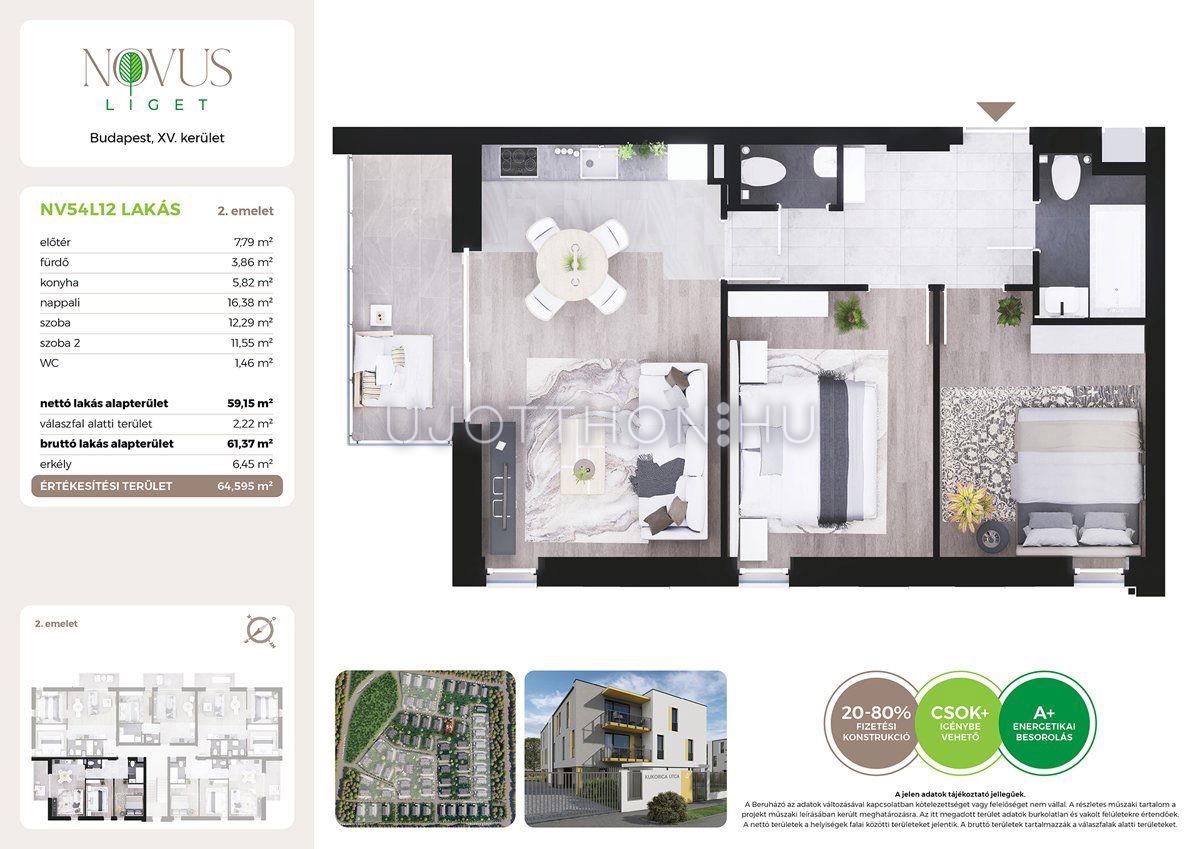 3 szobás 59 m2-es Lakás Novus Liget - Budapest XV. kerület, Rákospalota, Kékszilva utca 2