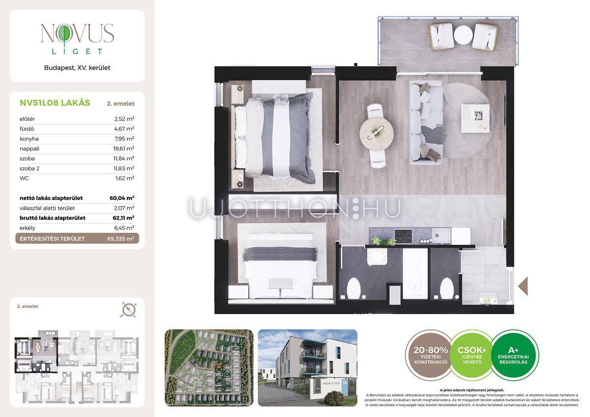 3 szobás 60 m2-es Lakás Novus Liget - Budapest XV. kerület, Rákospalota, Kékszilva utca 2