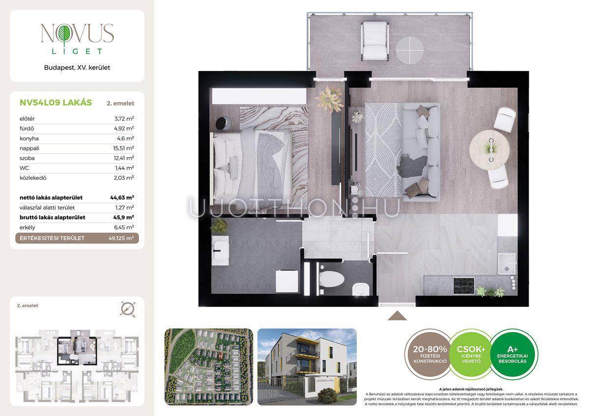 2 szobás 45 m2-es Lakás Novus Liget - Budapest XV. kerület, Rákospalota, Kékszilva utca 2