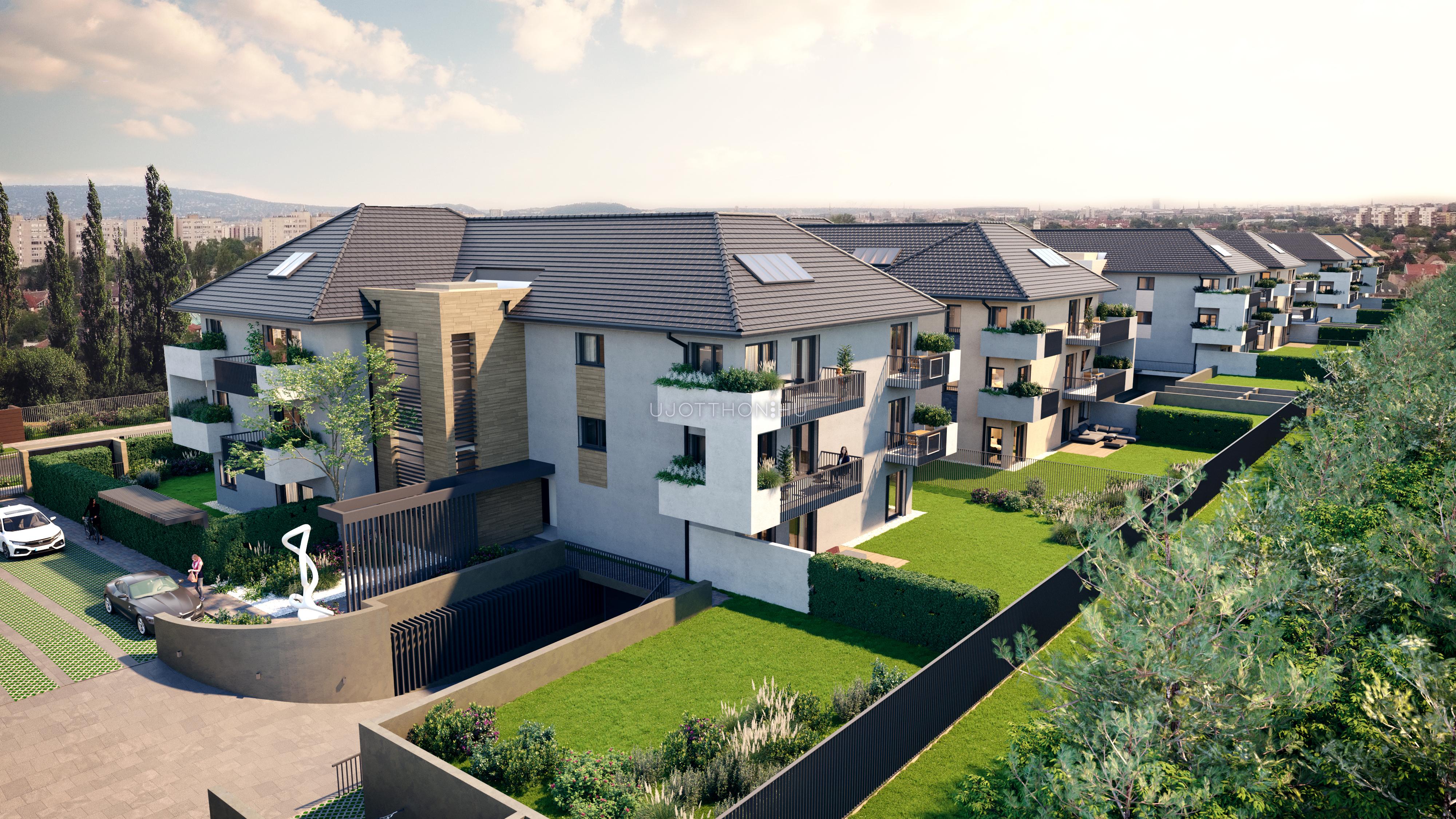 A fejlesztés során 14 önálló épületben mintegy 165 lakás épül több ütemben, társasházanként 12 lakás megvalósításával. A parkolás a házak alatt mélygarázsokban kerül kialakításra. A kis lakóközösségű társasházak hátsó frontja egy 50 m széles cserjés, fás zöldsávra néz, Budapesten szinte páratlan magánéletet biztosítva a lakóknak. Az épületekhez kapcsolódóan magas színvonalú közösségi infrastruktúra jön létre: utak, járdák, parkolók és nagy zöldfelületek, amelyek az építkezéssel egyidőben készülnek el.
