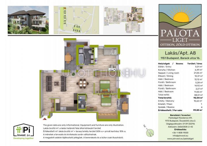 3 + 1 félszobás 92 m2-es Lakás Palota Liget - Budapest XV. kerület, Barack utca 16